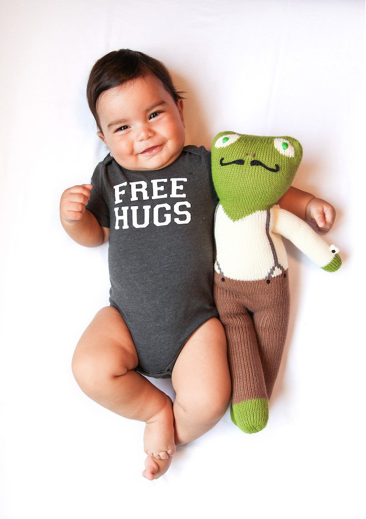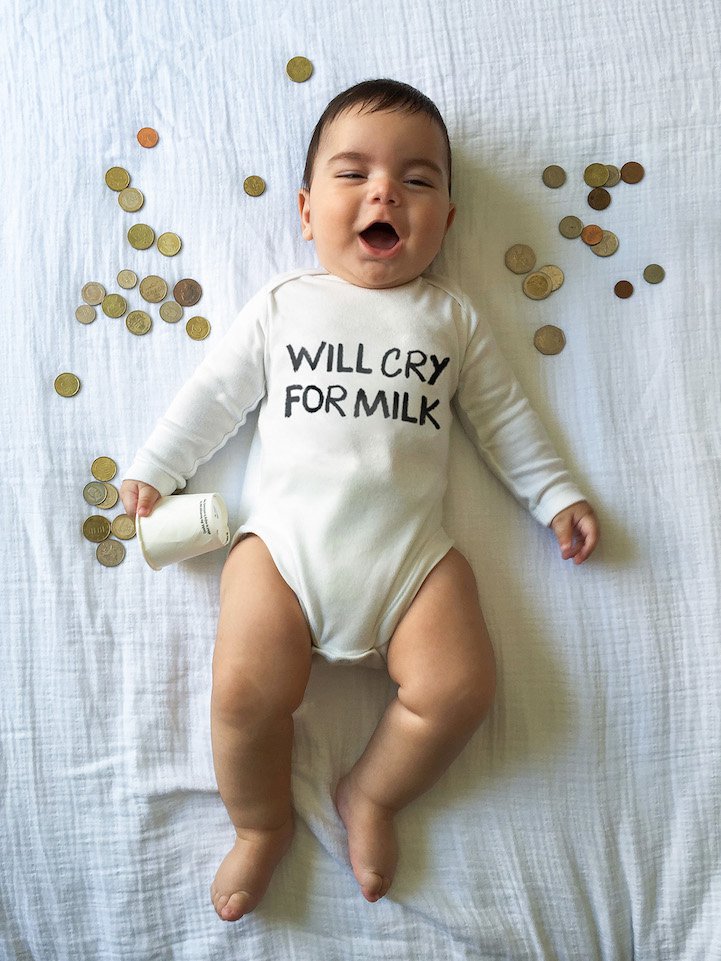 Timur is only 9 months old and his onesies collection is full of witty messages. The photo series is called Happy Thursdays and as you can easily imagine, a new photo is added to the collection each Thursday. And the surroundings of each photo are connected to the message of each garment.