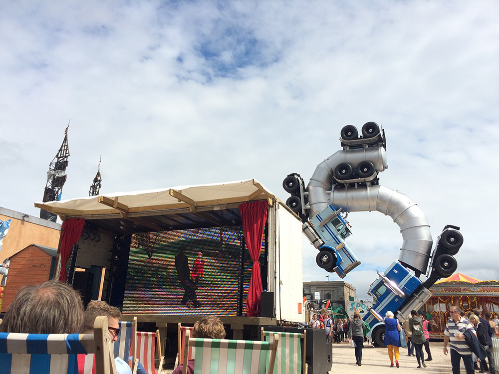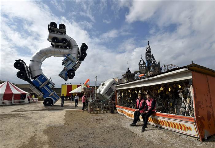 This place used to be a seaside swimming resort in Weston-super-Mare, UK. Now it is one of the most talked places around the world. It’s Dismaland, Banksy‘s largest artistic project so far. It’s a pop-up art exhibition that will be open only for five weeks, for 4,000 visitors/day.