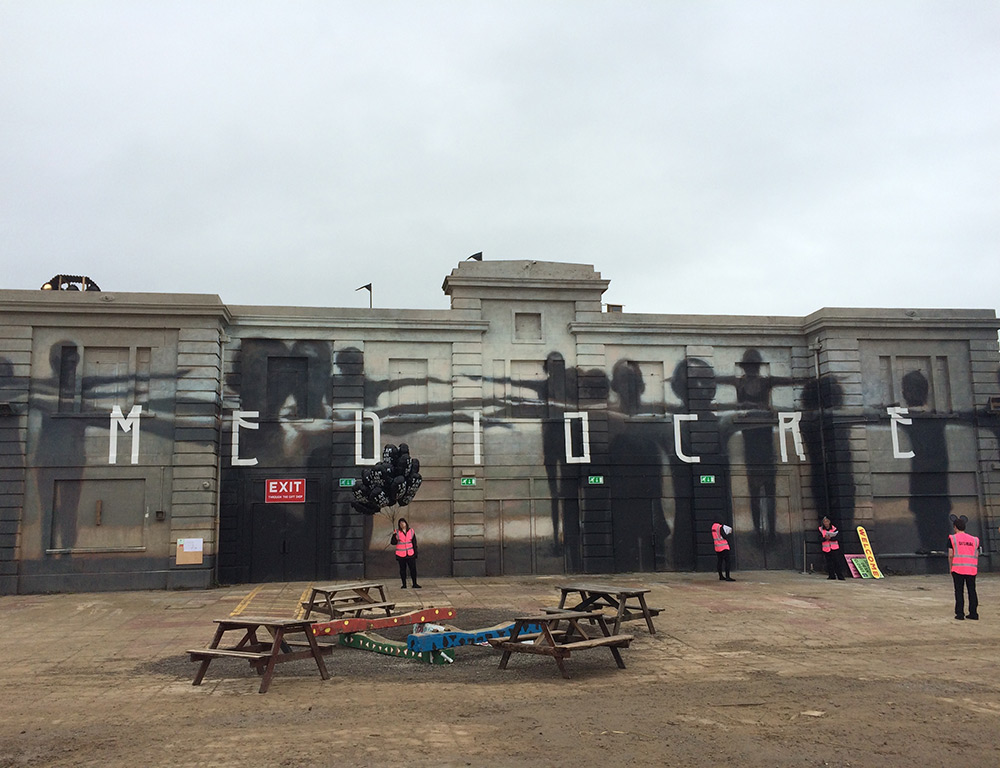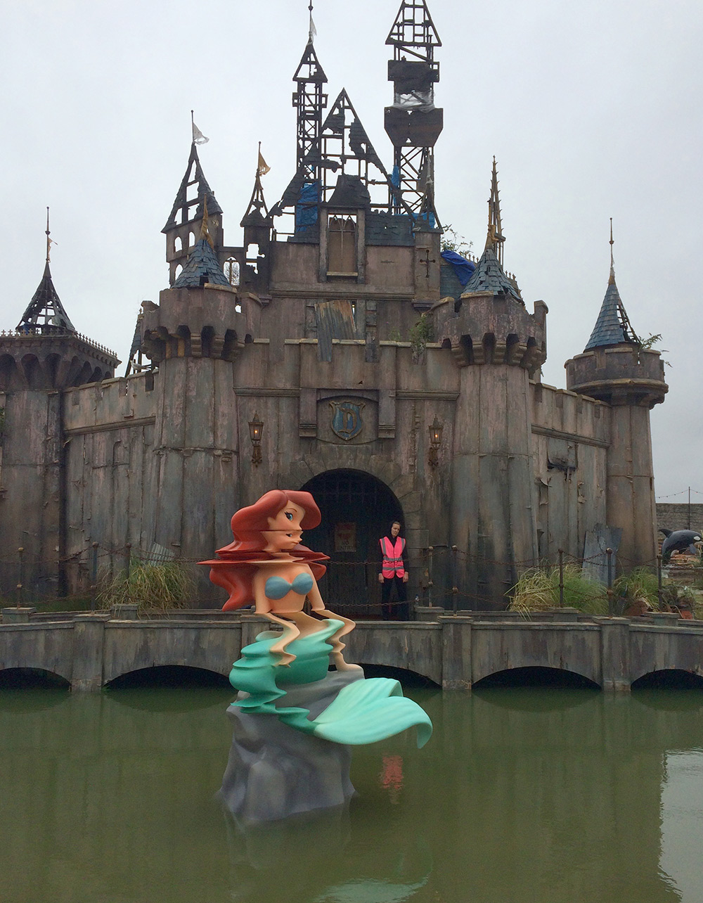 What you will find in “The UK’s most most disappointing new visitor attraction” is a Disney-like castle, a Little Mermaid, a weird mini-golf course, anything to be found in an amusement park, but enriched with that Banksy effect of supspicion and anticipation, anti-consumerism and provocation. But what’s really interesting is that the bulk of it is not a work of the mysterious artist -only 10 artworks of his can be found in the park-, but of 58 artists, such as Damien Hirst, Josh Keyes, Mike Ross, Espo, just to name a few. Αdd to them all members of the staff, whose behavior is a total match to the rest of the site. They bored, not helpful at all and not so happy to give the visitor any information.