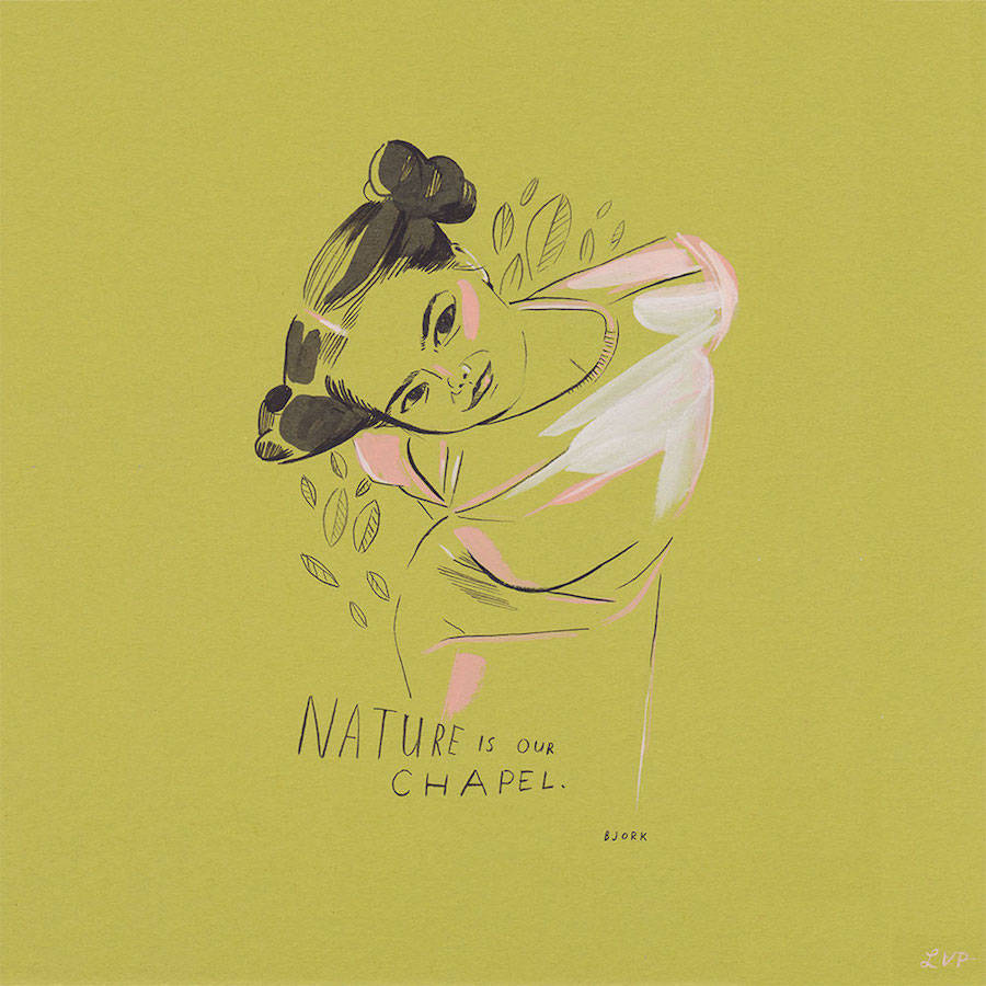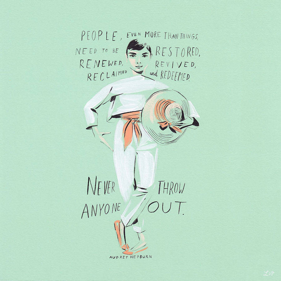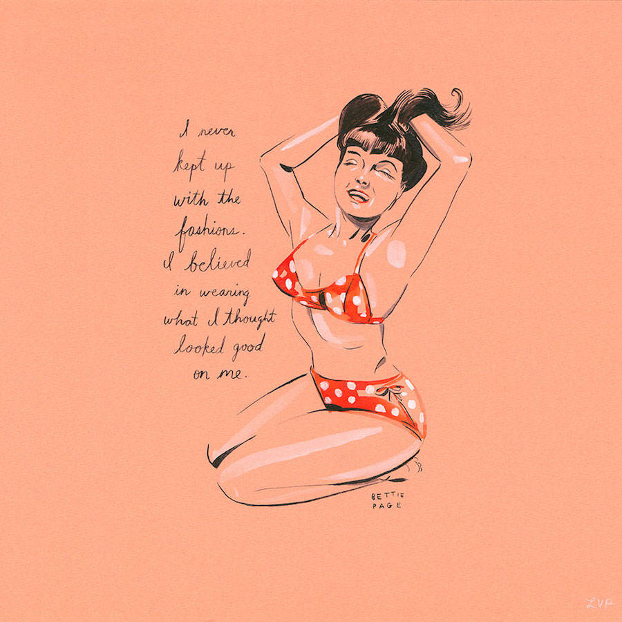 “Revival” is a collaboration between illustrator Lilly van der Ploeg and the shop “Dusty Rose Vintage” in Brooklyn, New York. It includes illustrations of women – dead or alive – who have managed to leave their own mark, such as Audrey Hepburn, Bjork and Frida Kahlo and it is accompanied by famous quotes, worthy of their personality. As Bettie Page said: “I never kept up with the fashion. I believed in wearing what I thought looked good on me”. If this is not the epitome of style, then what is it?