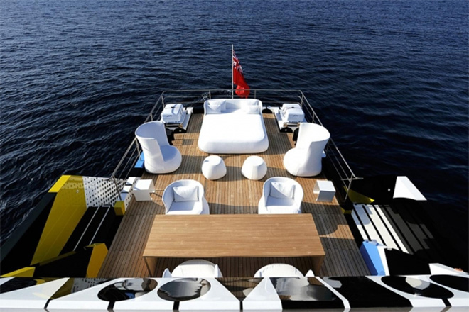 The luxurious yacht named “Guilty” belongs to the collection of the businessman and contemporary art collector, Dakis Joannou. The 35m yacht was first launched in 2008 and until now it attracts great interest because of its unique design. It’s a floating piece of art designed by the American artist Jeff Koons in collaboration with the yacht designer Ivana Porfiri. The boat’s exterior is inspired by the camouflage used by the British Navy in World War I. On the top, the art piece is completed with a large image of Iggy Pop who is illustrated as a “Contemporary Dionysus” while the interior of the vessel is decorated with some pieces of Mr Joannou’s collection. For the Greek-Cypriot businessman what matters most about the yacht is that it provokes reactions, fact that coincides with the identity of the artist who divides critics.