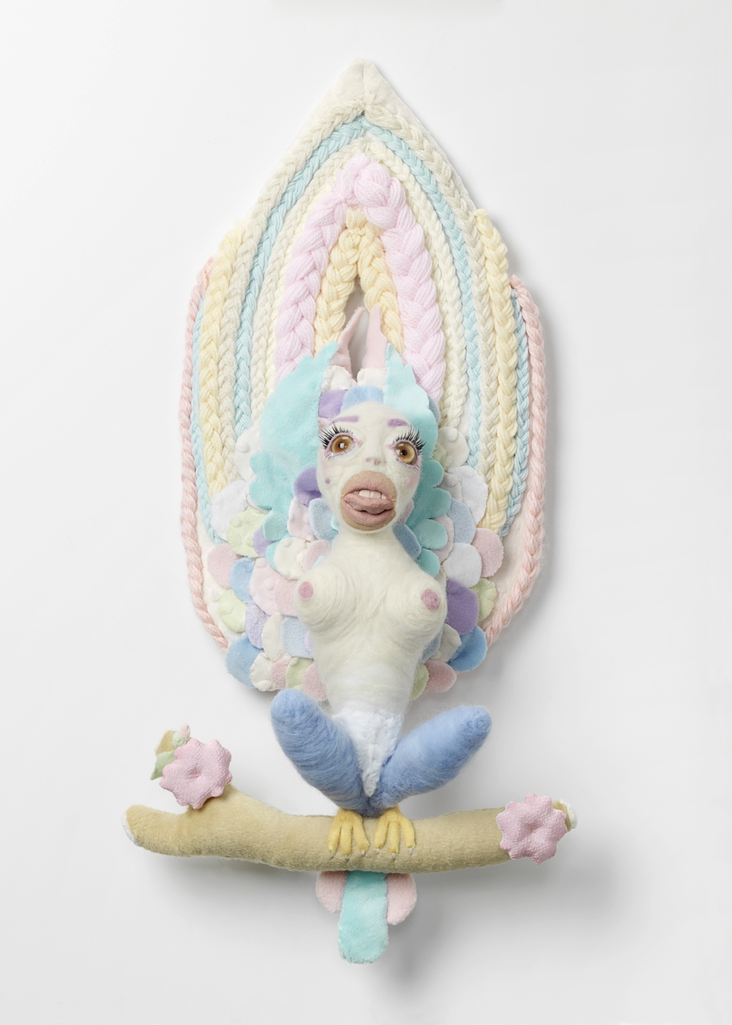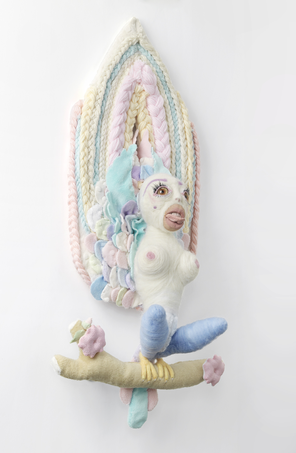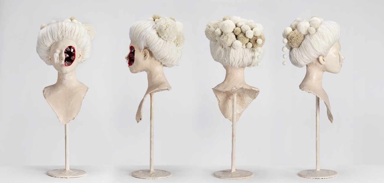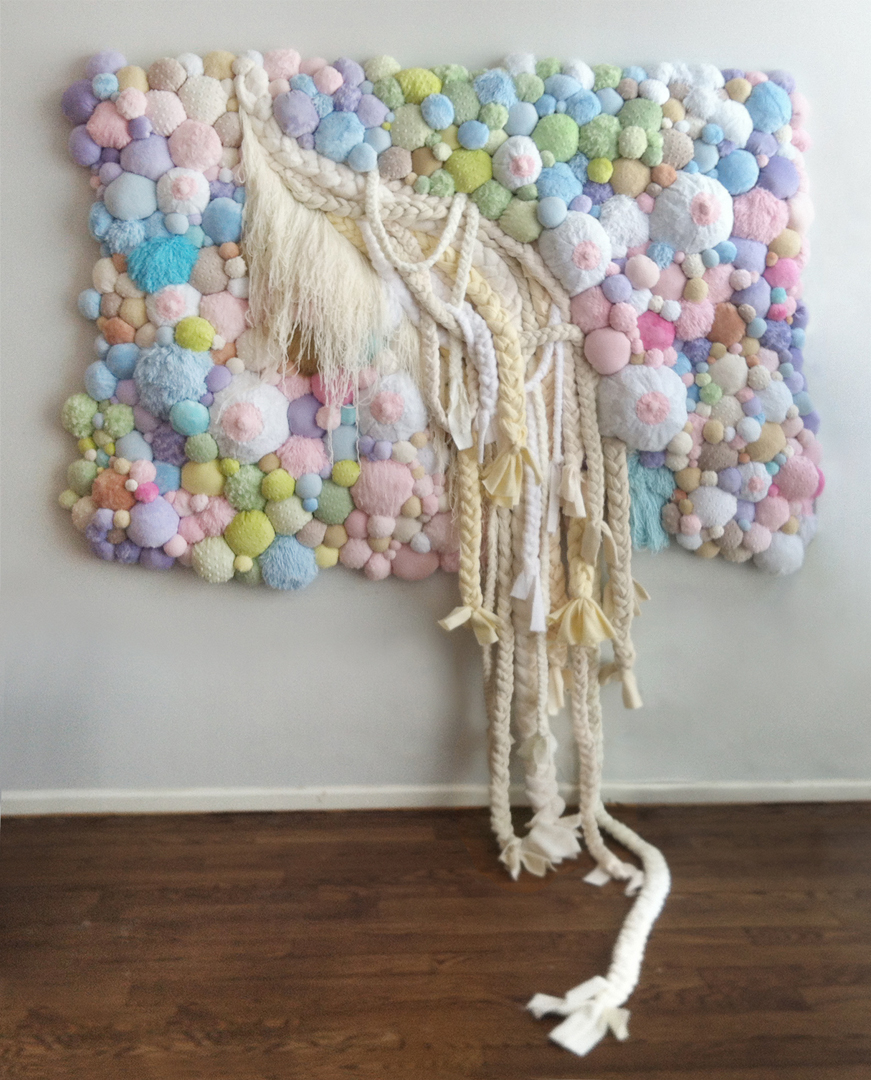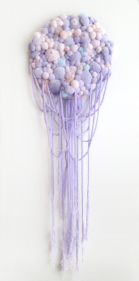 “I like three dimensional better because, unlike two dimensions, I don’t over explain it” Harold states, while supporting the individuality of her artwork. Being influenced by Japanese culture, eastern elements are also apparent in her artwork. Her recent works are rich with fabrics, yarns and pastel colors.