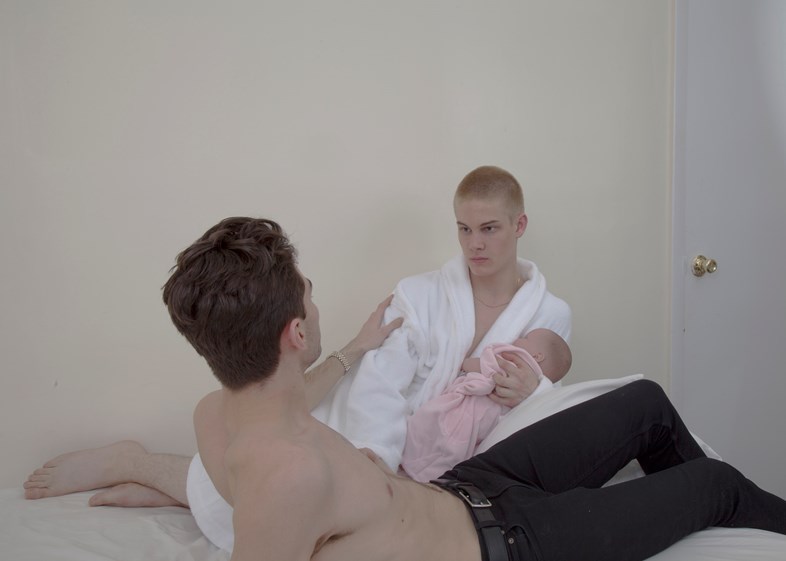 This obsession has affected Luke Smithers, who has taken up a project, using a boy, without making a statement for their sexual identity. After taking him to an old abandoned building, he dressed him with either nazi uniforms or womenswear. Wondering how rules concerning one’s identity, made Smithers work on the boy’s body, as if it were a canvas. It is never revealed however in which ones the model is pretending or not.