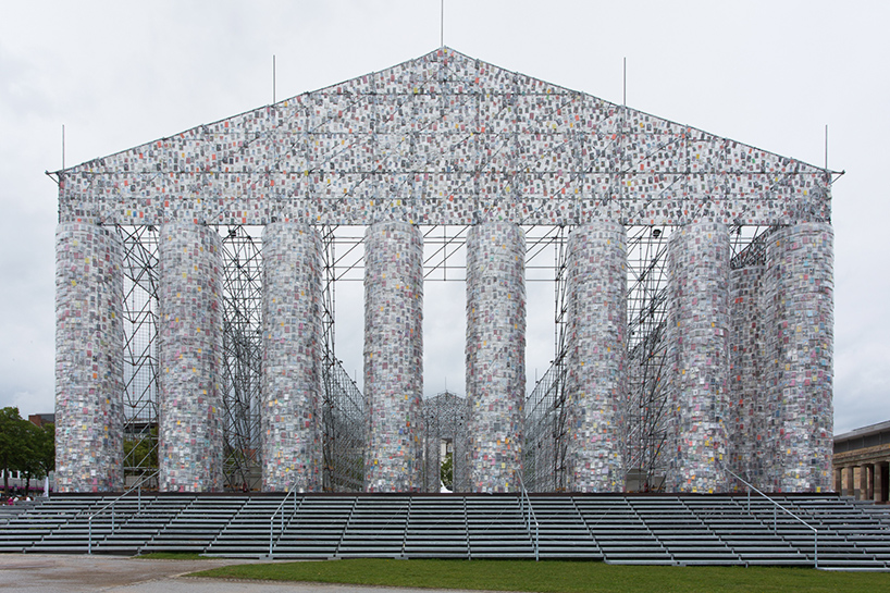 As part of the documenta 14 exhibition that is taking place in Athens, Greece and Kassel, Germany this year, the Argentinian, multidisciplinary artist Marta Minujín takes a stance on censorship. She created a full-scale replica of Acropolis’ Parthenon out of 100.000 books that have been banned by totalitarian regimes at some point in history. The structure stands on Friedrichsplatz, the park where thousands of books were burned in 1933 by the Nazis.