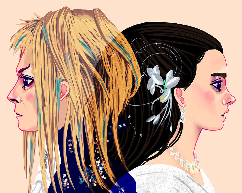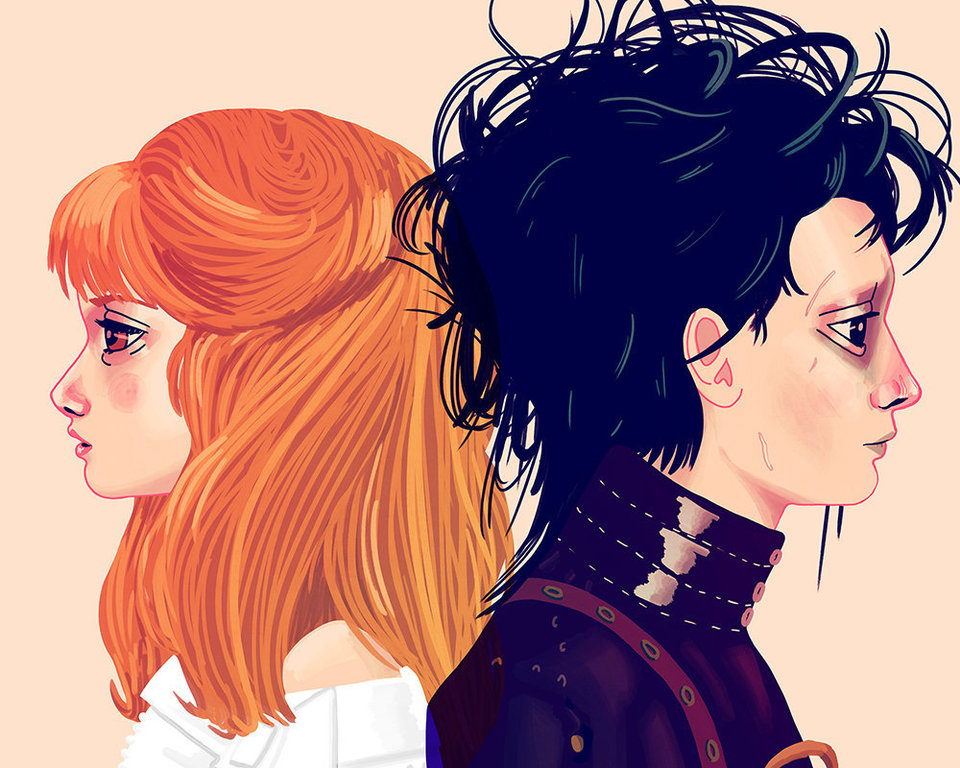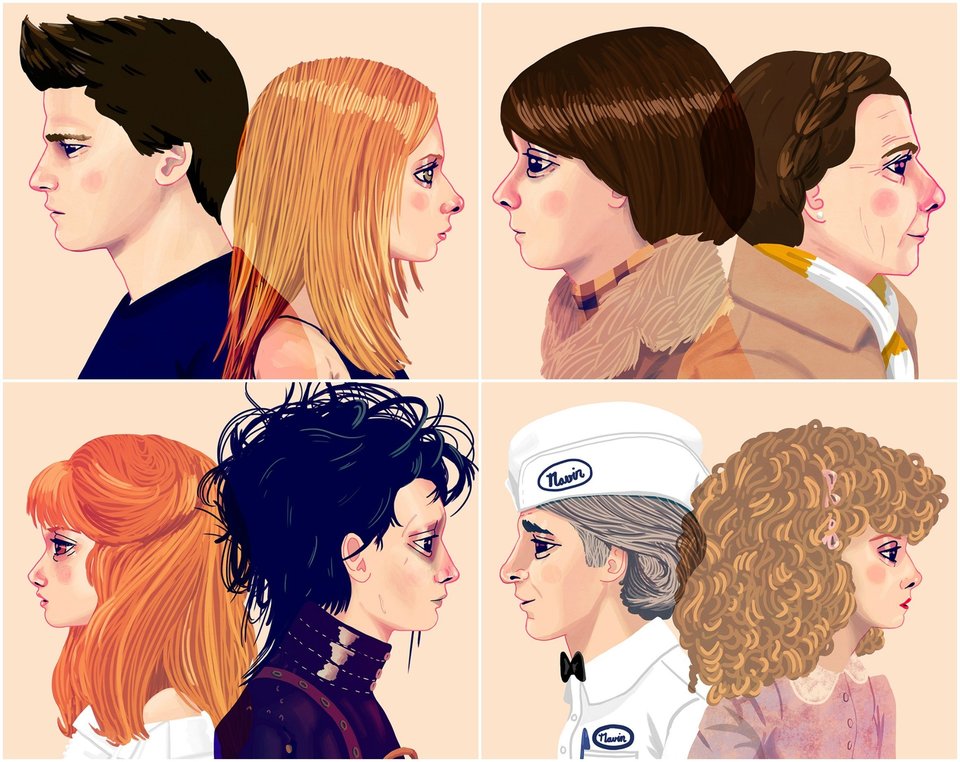 Nan Lawson’s exhibition in Los Angeles, just a little while before Valentine’s, contains illustrated couples pretty much known to all of – because they have made us cry, laugh and dream with them. From Buffy the Vampire Slayer to Samatha of “Her” the movie, and from Edward the Scissorhands to Harold & Maude, the faces of Lawson are not the classic romantics that you would expect to see. Influenced by the Manga technique and the Venn diagrams, that use intersecting circles to emphasize the similarities, Lawson decides to create them digitally “as if they were two parts to one whole” and although they are looking towards a different direction, “they are facing the world together”, she said to Huffington Post.
