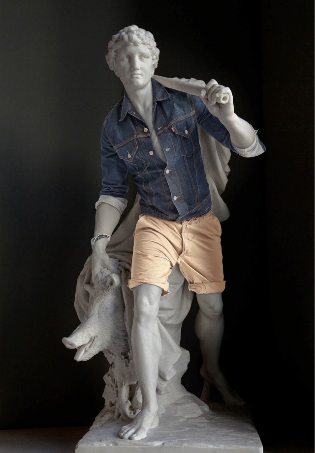 Léo Caillard, photographer, in his project “Street Stone” asked for the help of his friend and artistic director, Alexis Persani, in order to dress in a modern way some of the Louvre’s statues in Paris, dating from the Renaissance to the 19th century. To accomplish this, they took pictures of the statues, then asked their friends to be photographed in the same position, wearing the specific clothes and accessories. Finally, using Photoshop, they managed to “marry” those two different worlds. Léo Caillard says about his project: “It raises the question: what is the importance of clothing in modern society? The way we dress says a lot about who we are. If we put modern garments on old statues, then they cease to be just figures from the distant past and look like people of today who could come from any metropolis in the world.”