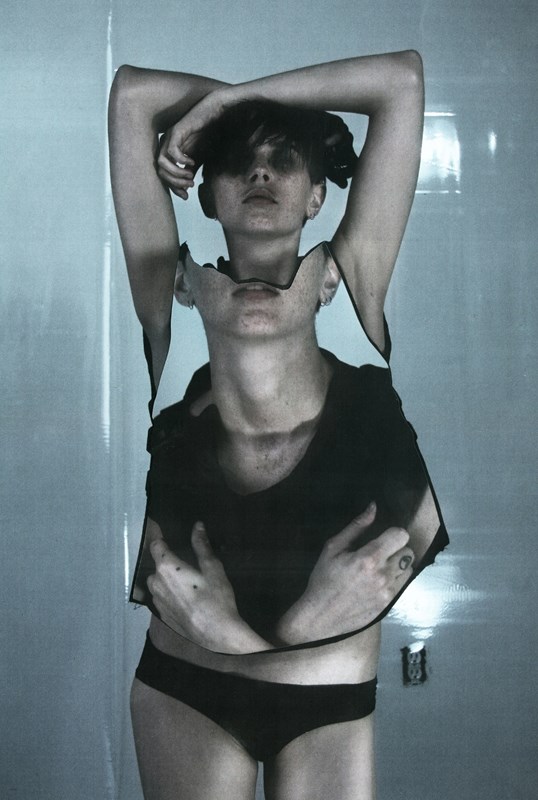 Artistic duo Jess Draxler and Jen Whitaker is back with an artistic project with weirdly sexual and visually challenging collages and man crossing the lines between human being and machine. The new series with model Sara Cummings as the leading face is about transformation from humankind into machine – creating synthetic beings of organic material, ghosting through dimensions going back to 90’s.