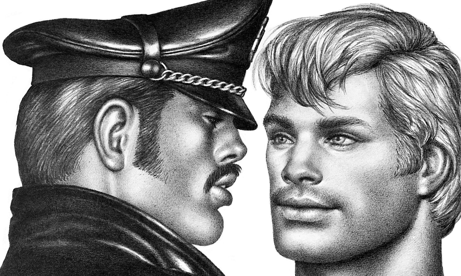 The world Tom of Finland created through his gay erotic illustrations has been iconic since the late 50’s when his work was published in the influential American magazine Physique Pictorial and reached, for the first time, a wider audience. His black and white drawings had a stylized feel and portrayed overtly muscular men engaging in homoerotic, fetishistic sexual acts that went against laws of the time, forbidding the distribution of such explicit material.