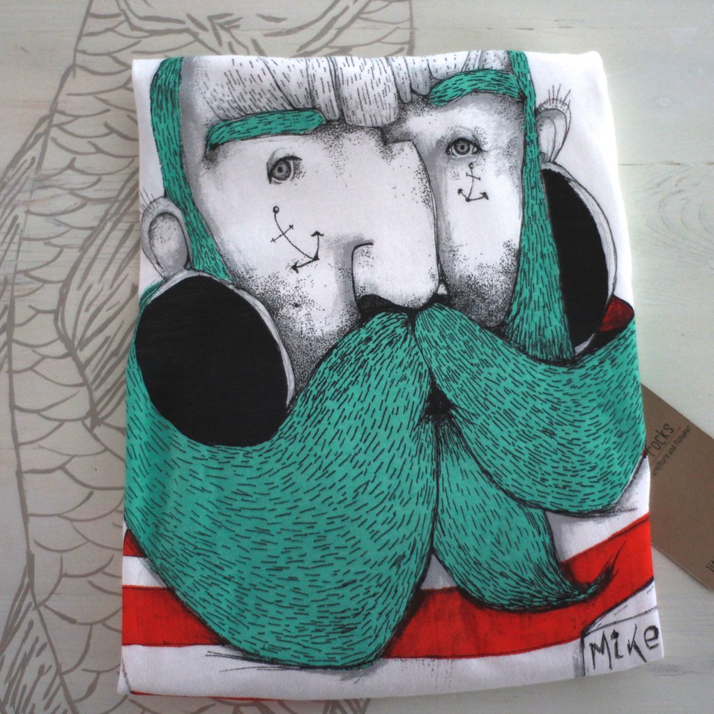 Their online store is filled with imaginative, quirky, original illustrated characters on t-shirts, jewelry and home décor pieces that will just keep you scrolling for more. The heroes of the sketches are everyday type people but with a comedic twist. Yellow-bearded hipsters, nostalgic sailors, heavily tattooed 50’s couples are just a few examples. Graphic, comic-like with splashes of vibrant colours, the illustrations are wonderfully unique and are the signature of the brand.