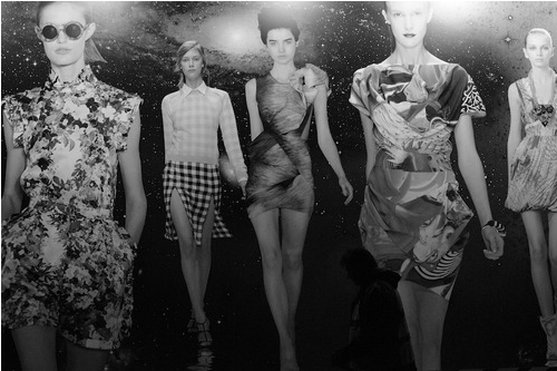 Does leather and lace go with floral? The answer at Christopher Kane AW10 show was a big yes. All black on the back, full of flowers on the front, Kane managed to create a collection for the contemporary woman. When you can’t decide whether you are tough and strong or you are the folklore type Christopher Kane’s clothes allow you to free yourself and be both and that for us is a man with a vision. At the first show for Marios Schwab’s brand named line after his appointment as Halston’s creative director we watched a classic well tailored collection. Inspired by his days as ‘the only boy at fashion school’ Schwab delivered a collection that nodded back to his roots. Nostalgia pumped up by a bit with austrian folklore. Ioannis Dimitrousis presentation did away with the limelights. Elaborate knitwear, revealing and sexually provoking as always, his new collection is truly revealed in the dark when the threads of the dresses start to glow. At the end of the night we were at Machine-A’s party where the collections of up and coming designers Asger Juel Larsen, Gabriella Marina Gonzalez and Gemma Slack were presented.