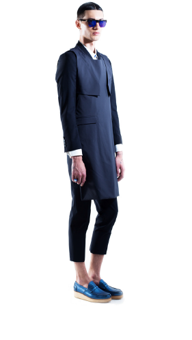 The Belgian fashion designer Six Lee, is known to the Ozon Raw audience through his participation at the fifth 4FASHIONSHAKE, that was held in April 2012 at the Pallas Theatre. We have just received his look book, where he composes his brand new S/S 2014 collection and it was absolutely breath-taking. His main inspiration was the Finish photographer/painter Niko Luoma. A series of mind-blowing outfits, that combines the finesse of an aristocratic costume, found only in the 19th century dandy, with the modesty of a worker’s clothing. The color blue and its varying shades, appears to consist once more the main palette of the designer, while a knife, a ghost and a gun create sophisticated prints. The silhouette is strictly geometric, giving that way a most dramatic flair to the collection. Always combining the finest materials with a refining figure, Six Lee created clothes that are not only “protecting” the body but also the SOUL, and as he says: “Love is a battle, love is a war; love is a growing up”.