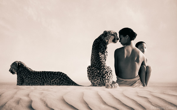 Gregory Colbert, a Canadian filmmaker and photographer created a project that aims in capturing the primal relationship between man and animals and nature in general.