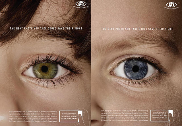 Now, through an ad campaign in Britain, anyone can check if their kid suffers from that illness, by using flash photography. This campaign, which was originally designed for the Childhood Eye Cancer Trust, features interactive posters, the goal of which is to inform parents of this ability. Each poster shows a kid who has survived this illness and so parents can take a picture of a poster using the flash photography of their camera. Through the resulting photo they can see the symptoms of the retinoblastoma: a bright spot instead of a “red eye” (which is usually caused from a flash light). If there are no “red eye” spots at all and just a glow at one eye, then there’s an indication of the illness.