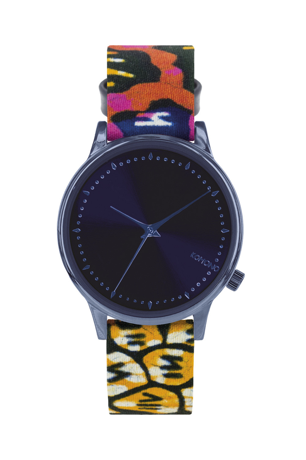This time, in collaborating with brand Vlisco, Komono is presenting 6 new watches with the prints of the Dutch company ornamenting their wristbands, the only brand creating authentic Dutch Wax fabrics recognisable for their unique design, coloring and quality. Two of the most popular dial designs, the Estelle and Winston, create in combination with the wristband, these beautiful models.